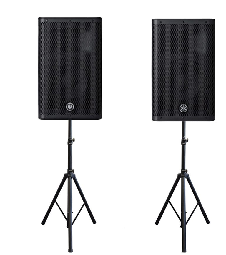 All-inclusive package deal, with plenty of sound to cover up 200 ppl. Includes 2 x Yamaha DXR15 speakers, 2 x Speaker stands (and scrims), 1 x Mixer 10CH with FX, all the cables needed.
